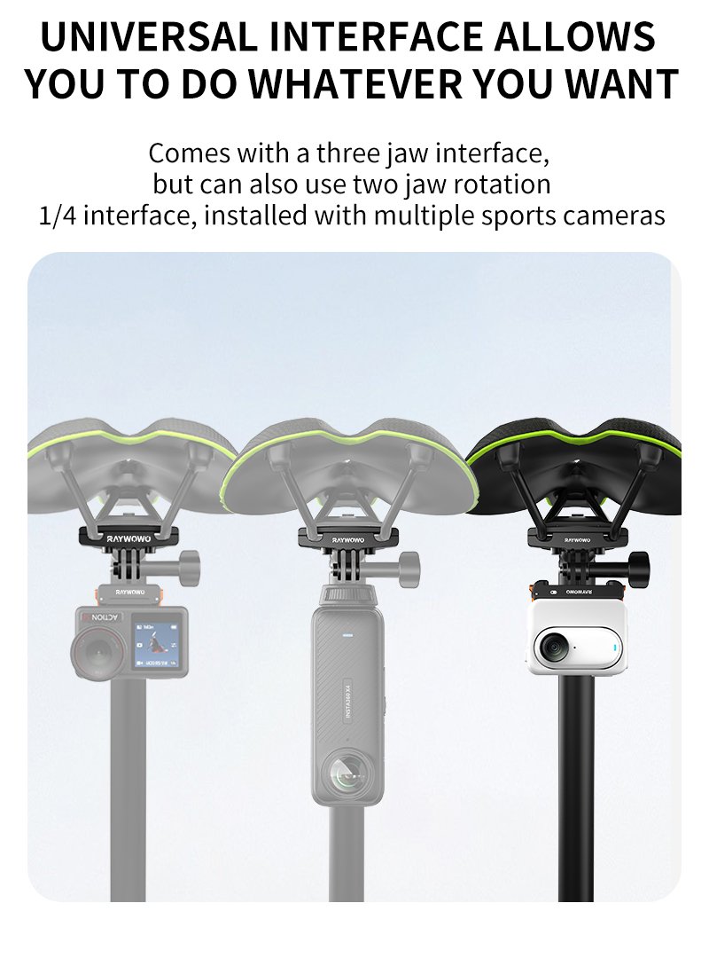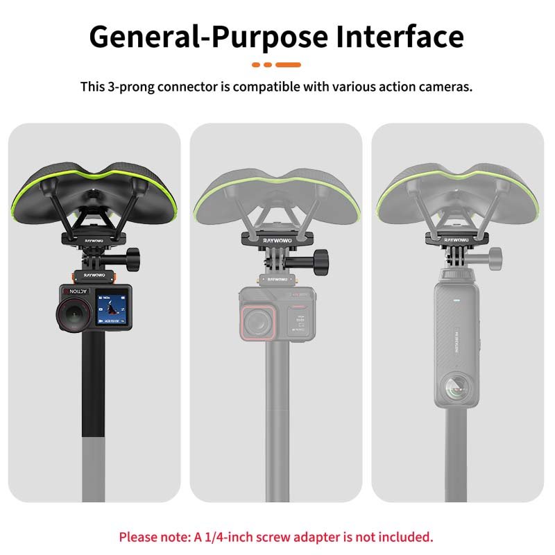 Equipped with a 3-claw interface and includes a 2-claw to 1/4″ adapter, compatible with a wide range of action cameras.