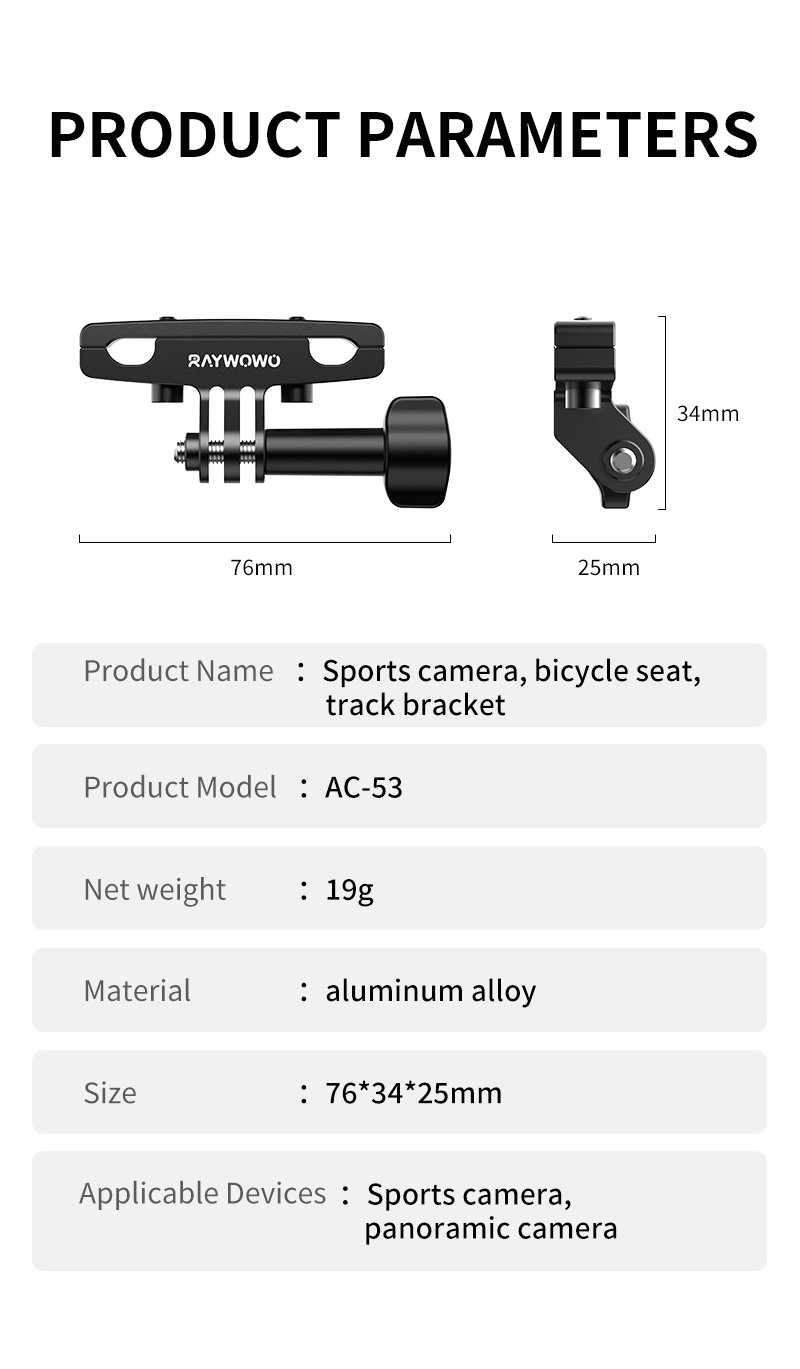 Bicycle Saddle Rail Mount for Action Cameras