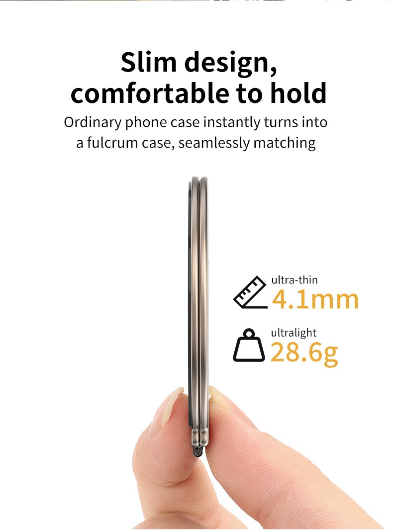 Sturdy support that securely holds your phone upright, freeing your hands. Slim Design, Comfortable Grip